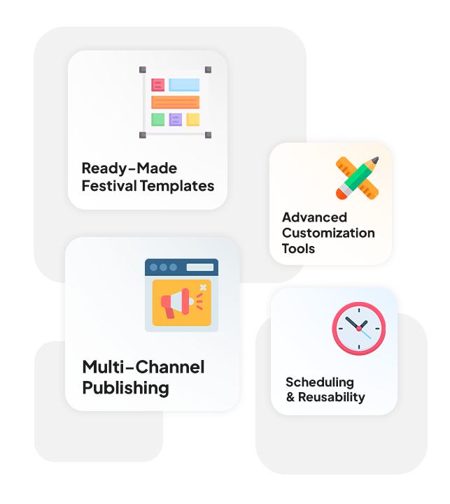 Automated Publishing & Scheduling: Allows banners to be scheduled and published automatically on apps, portals, and websites during festival-specific dates without manual effort.