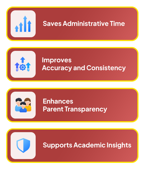 Enhances Parent Transparency: Provides instant digital access to report cards, performance summaries, and feedback, strengthening parent trust and engagement.