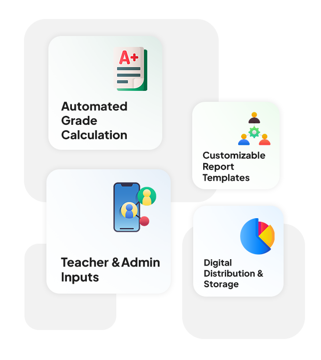 Digital Distribution and Storage: Lets schools generate PDFs, share report cards online with parents, archive records securely, and access student reports anytime.