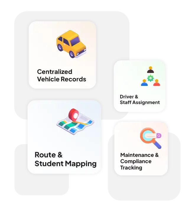 Better Compliance Management: Helps schools stay updated on vehicle documents, insurance renewals, and maintenance schedules.